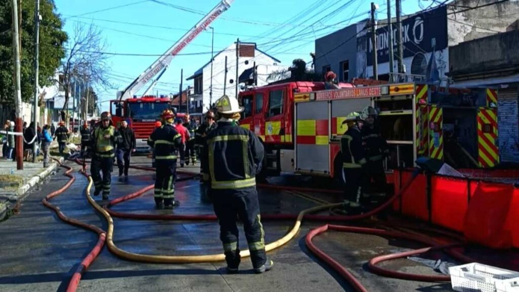 “El fuego afectó un espacio de aproximadamente 8,66 x 50 metros y fue necesario el trabajo de 13 dotaciones, con la participación de entre 30 y 33 bomberos para contener la situación”, precisaron desde Defensa Civil. Dos personas fueron asistidas en el lugar por inhalación de monóxido de carbono.