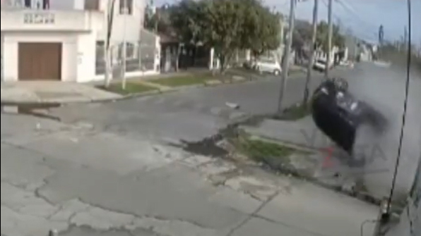 El hecho ocurrió en la esquina de Albariños y De La Peña, durante la tarde del domingo, cuando el auto en el que la banda huía circuló en contramano por Albariños a más de 100 kilómetros por hora hasta que impactó contra un patrullero y chocó contra la pared del patio del Jardín de Infantes 943 tras lo cual volcó en la vereda y con los cuatro ladrones ilesos por lo que intentaron escapar a pie.