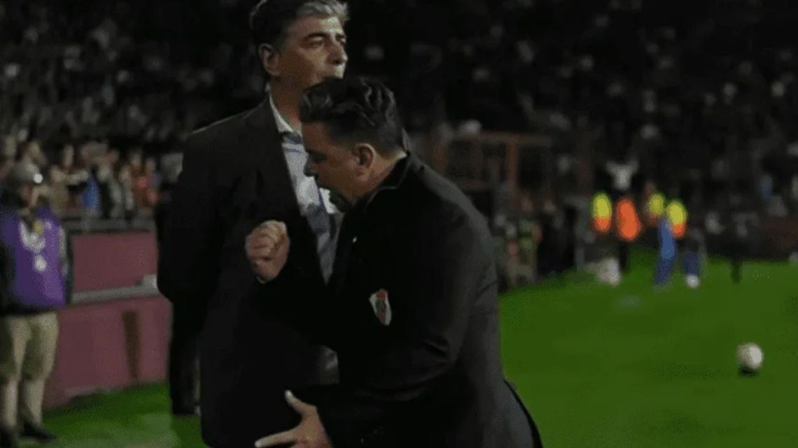Ni bien la pelota ingresó en el arco de Armani, Gallardo explotó: lanzó un insulto al aire y tuvo un cruce con su ayudante Matías Biscay, que se mantuvo sereno pese a la situación.
