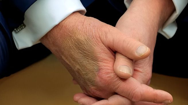 En cuanto a los hematomas, la secretaria de prensa Karoline Leavitt aseguró que son por “estrechar manos con frecuencia y por el uso de aspirinas”, que Trump toma regularmente para reducir el riesgo de un ataque cardíaco o un accidente cerebrovascular.