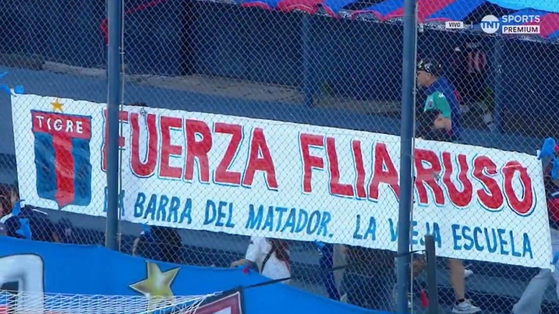 En el partido del fin de semana pasado, los hinchas de Club Atlético Tigre quisieron rendir homenaje al fallecido Miguel Ángel Russo, pero su gesto quedó marcado por un detalle inesperado: una bandera colgada en la tribuna decía “Fuerza Flia Ruso” en lugar de “Russo”.