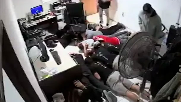 Apenas irrumpieron en el lugar, uno de los delincuentes extrajo un arma y comenzó a dar órdenes a los gritos. “¡Al piso! ¡Todos al piso, vamos!”, exigió, obligando así a una decena de trabajadores a tirarse boca abajo dentro de una de las oficinas del lugar. Para reforzar la apariencia de un operativo policial, también les ordenaron tener los documentos en la mano.